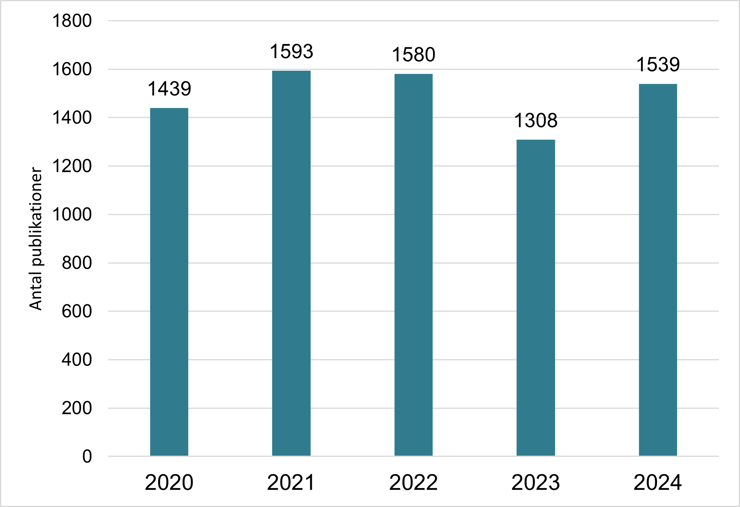 Antalet vetenskapliga artiklar publicerade av forskare knutna till Skånes universitetssjukhus
